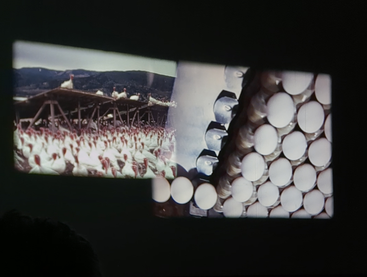 DOMESTIC is grounded in research on the food production industry, and focuses on relationships between humans and animals, eaters and eaten. The project stems from a batch of found 16mm agricultural and advertising footage shot in America in the 1960's; a poignant time for industrial and technological change in agriculture. With labor and land being increasingly replaced by chemical applications and machine advancements, commercial farms were morphing larger in size and fewer in number.