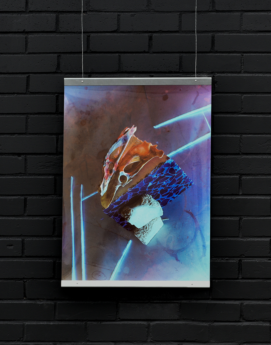 black and white negative, handprinted on ortho film and reversed as a bw print on expired Agfa postcard paper